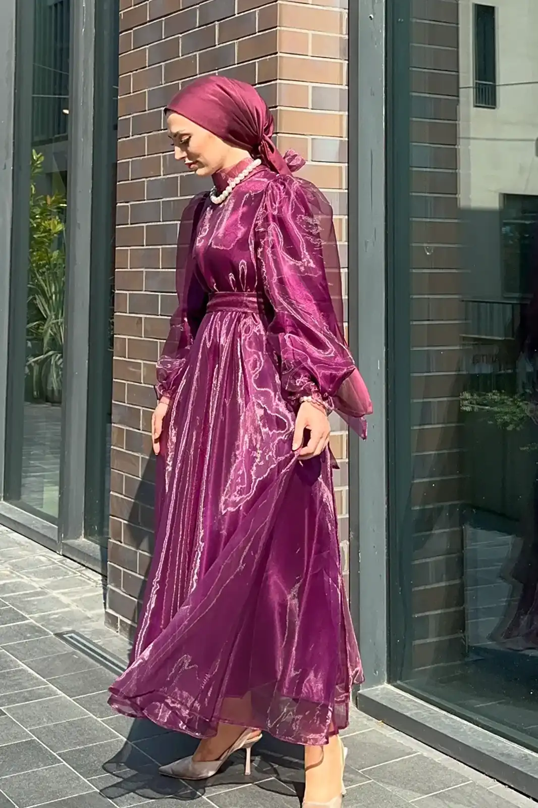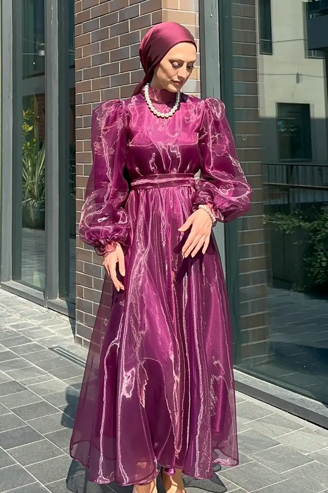 Elbisenin organze detayları, zarafetinizi vurgularken, kol uçlarındaki büzgüler, elbiseye hafif bir rahatlık ve zarafet katar. Altair elbisesi, özel davetler, akşam yemekleri veya özel etkinlikler için mükemmel bir seçenektir.